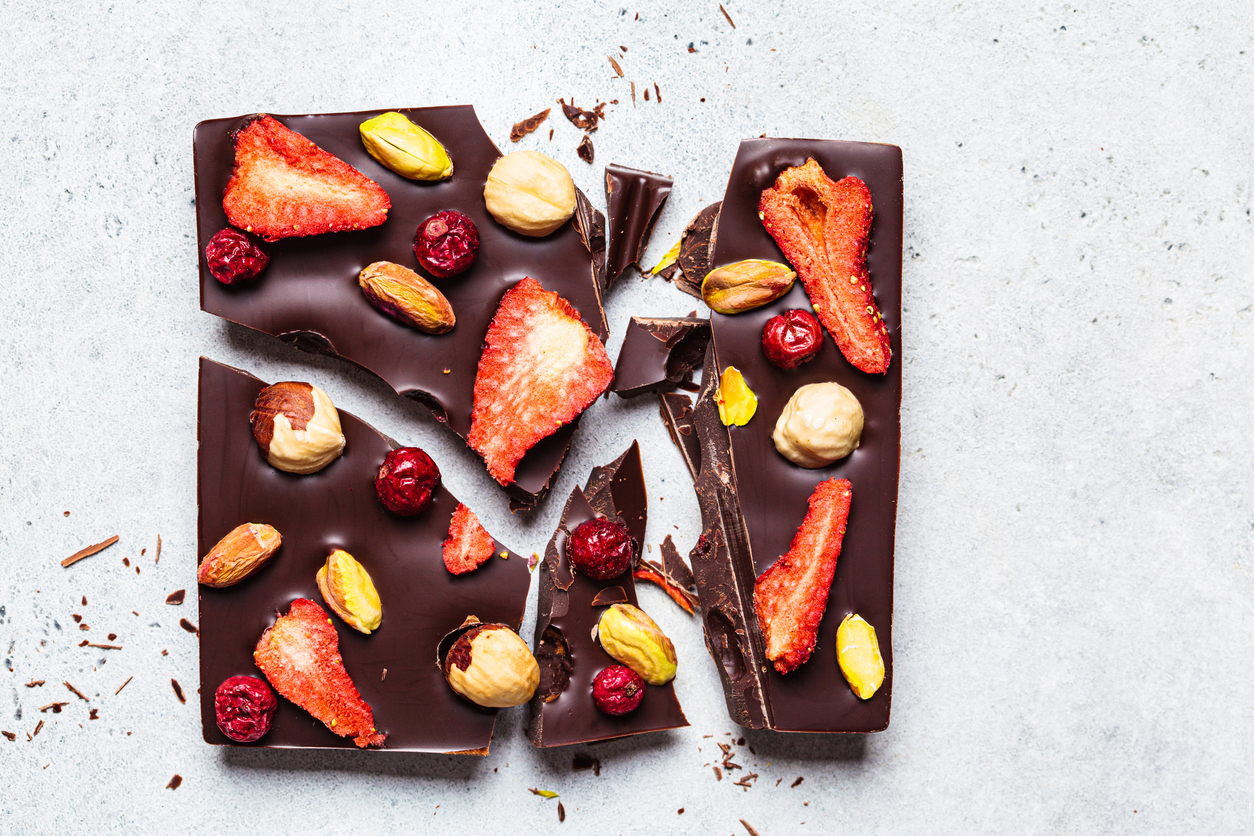 Yogurt bark is fun and a little unexpected, which makes it a nice senior-friendly dessert when you want something different. Simply spread yogurt on a baking sheet, sprinkle with your favorite fruit and nuts, then freeze. Once frozen, break into pieces. It’s easy to portion out, so it’s one of the best healthy snacks for seniors to keep on hand for busy days. (Just be mindful of your teeth when chomping down.)